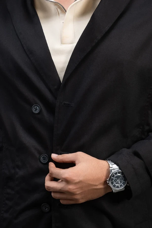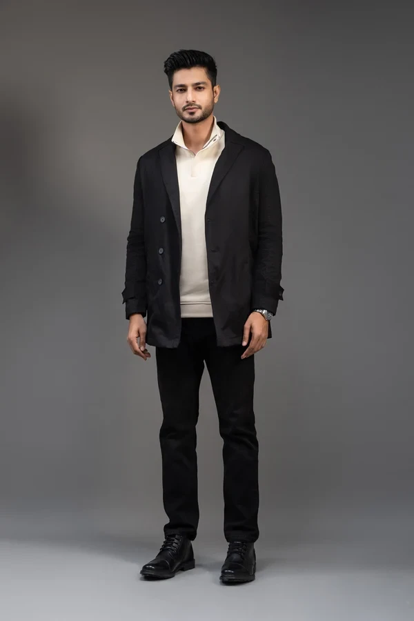 Introducing our loose-fit drop shoulder jacket, crafted from blended woven fabric for a comfortable, classic, and stylish appearance. This jacket feat...